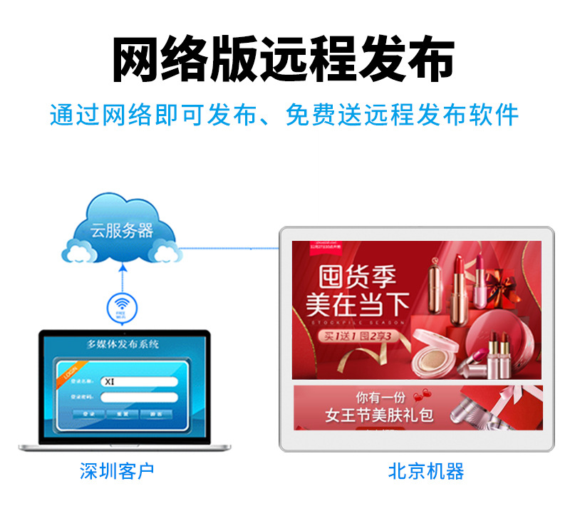 通過無線網(wǎng)絡(luò)連接的方式給電梯廣告機增添網(wǎng)絡(luò)是比較合適推薦的,中鴻數(shù)科電梯樓宇廣告機都直接自動上傳自動下載人性化功能,選擇設(shè)定好的無線網(wǎng)絡(luò)連接,通過電腦終端就可以播放和更新畫面,使用簡單方便。